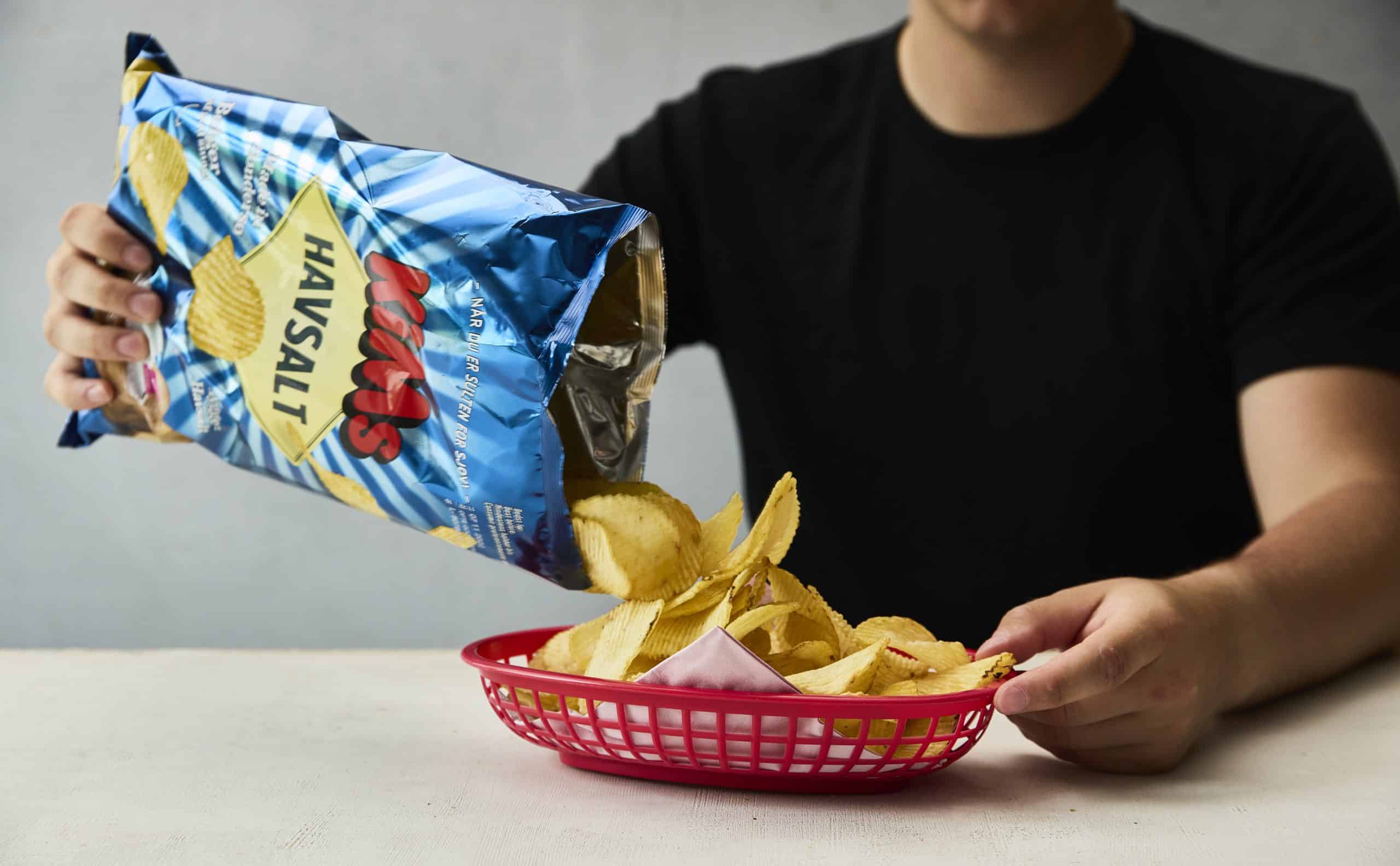 Ingredienser: 67% kartofler, 31% solsikkeolie, 1,6% havsalt.