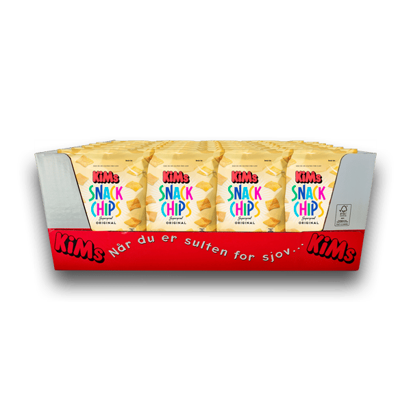 KiMs Miniposer Snack Chips 24x25g er den firkantede Snack Chips i den gule pose. En sand klassiker, der så dagens lys helt tilbage i 1987. Snack Chips knaser ekstra højt – de er nemlig ekstra sprøde og svøbt i lækre krydderier. Og så har vi tilføjet riller i hver eneste chips, så smagen har et sted at lægge sig. Sagt mellem rillerne: Del dem med en god ven i larmende godt selskab. Og i minipose er de klar til at blive taget med på farten – dét er da knasende sprødt!