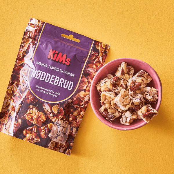 Sammensat til mundrette nøddesnacks er de din garanti for en sprød og lækker snack. Tag et bid af snack-himlen – tag en bid nøddebrud! Er du ikke til Nøddebrud fra KiMs, så kan du se hele vores udvalg af nødder her KiMs er en del af Orkla Danmark, som du vil kunne se bag på emballagen af vores produkter. Læs mere om Orkla Danmark her