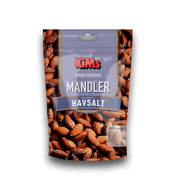 KiMs Saltede Mandler er sprøde og ristede med havsalt. De kommer fra det solrige Californien, hvor mandeltræets frugter bibeholder den rene, delikate mandelsmag. Efter de har taget sig et ordentligt solbad, har vi ristet dem og drysset dem med præcis nok salt til at afbalancere sødmen fra mandlerne. Ikke for meget, ikke for lidt – men lige tilpas, og allerbedst til den sjove sult.