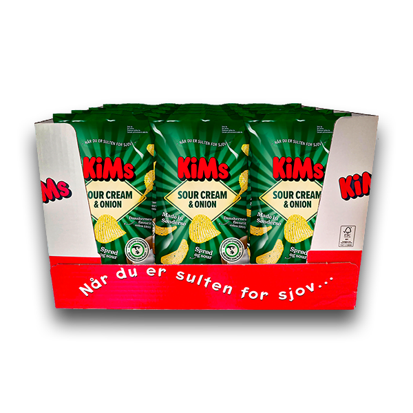 Med KiMs Sour Cream & Onion 12x95g får du den syrlige og bløde kombination af fyldige løg og kartofler med et cremet og spændende bid. Chipsene er delikate, sprøde og saftige på én og samme tid.